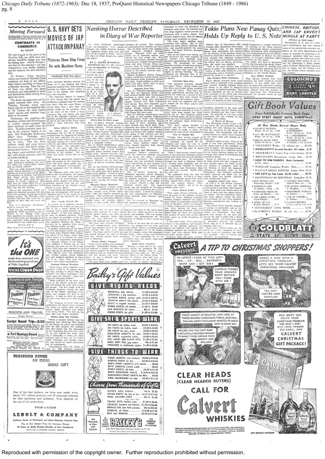 1937年12月17日,《芝加哥每日论坛报》刊登的门肯对南京大屠杀的报道