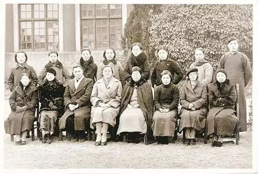 金陵女子文理学院难民收容所部分工作人员合影(前排左五为程瑞芳)