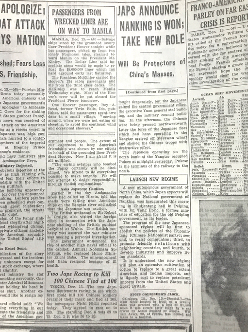两份美国报纸报道日军“百人斩”暴行