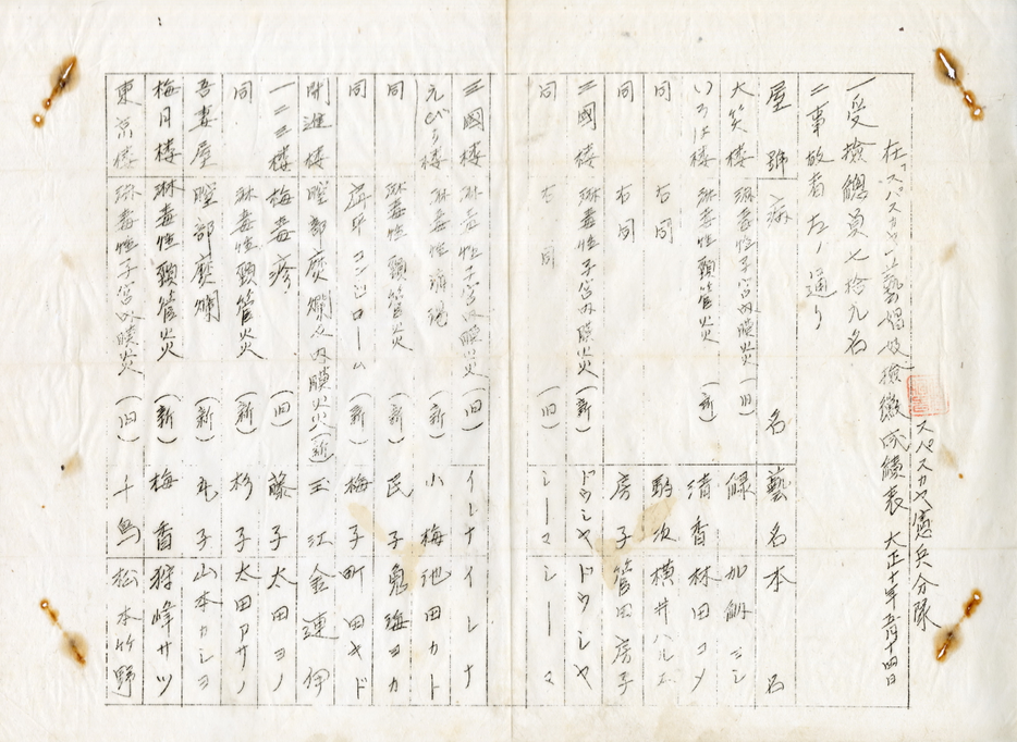 “日军驻西伯利亚宪兵分队艺娼妓体检表”(部分)