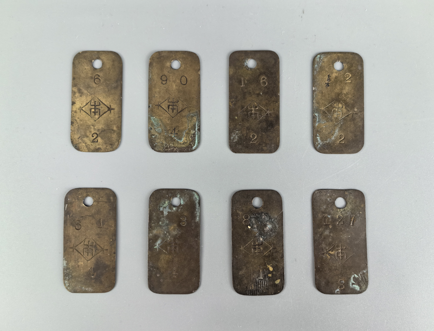 与上述文件一起发布的还有首次发现的妓院铜质号牌,共8枚,这些号牌上都标有数字。根据日军“慰安妇”制度管理体系初步判断,这些号牌上的数字应该是“从业妇”号码牌,每一个数字对应着一个“从业妇”。日军买票后,持有该号码牌便可以找到相应的“从业妇”,是日军“慰安妇”制度体系早期运作的直观体现,也为此后的管理提供了模板。反映了日军驻兵西伯利亚期间对妓院的控制和管理,对服务日军的“从业妇”健康的严格检查,以避免因健康问题影响日军战斗力。
