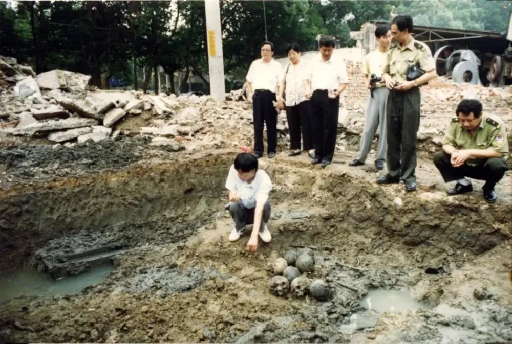 1998年8月18至19日,北京东路南空司令部北大门陆续发现的遗骨,初步认定为细菌战受害者遗骸。
