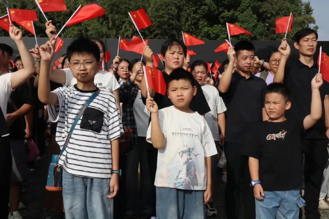 来自安徽阜阳的何先艳带着两个儿子来馆参观。何女士说:“看到五星红旗升起,听到和平大钟敲响的那一刻,我特别激动、自豪。希望孩子们能记住这份感动,长大后做一个爱国、有担当的人。”