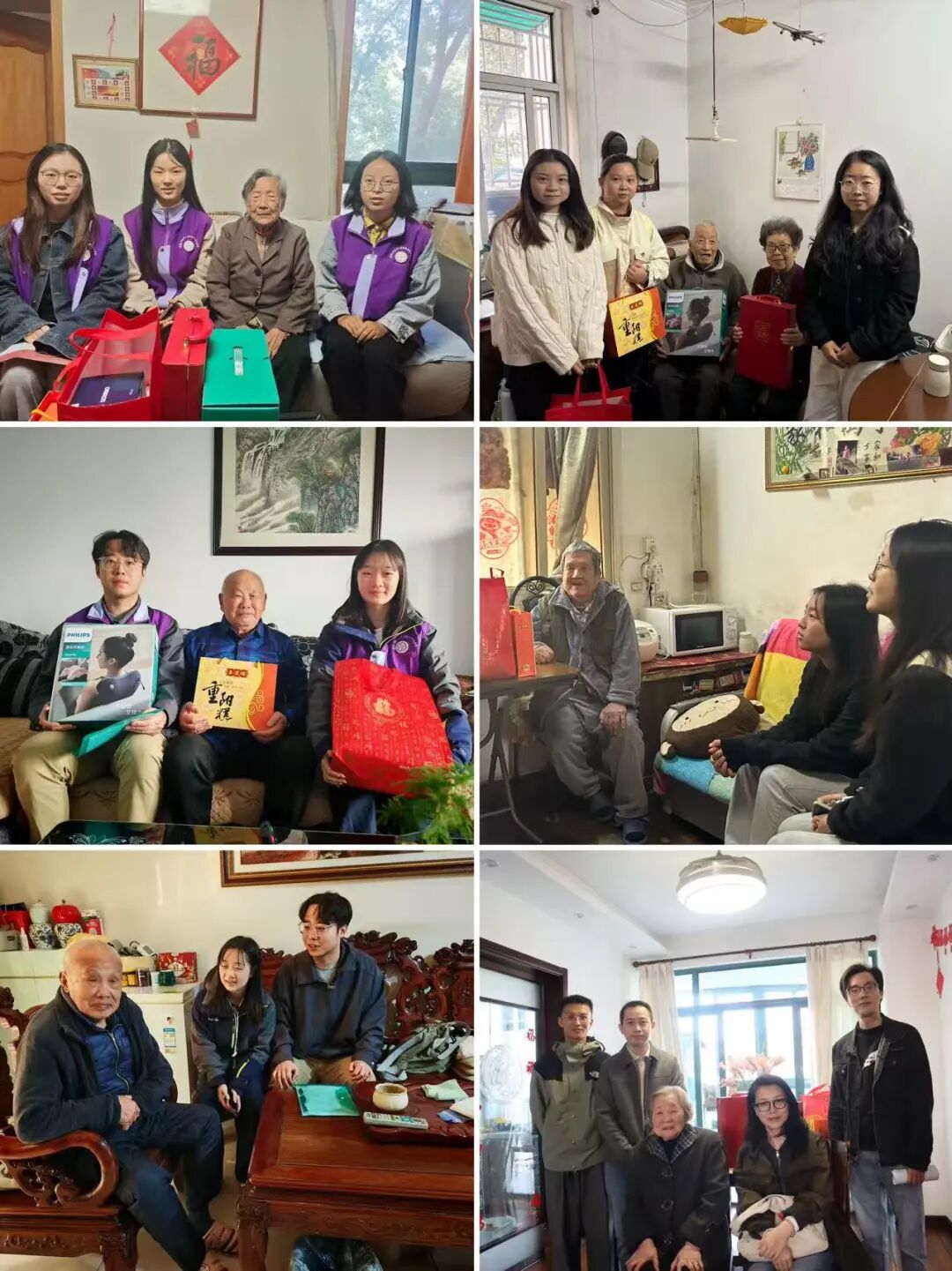 来自南京师范大学和南京艺术学院的同学们加入慰问。南师大学生郭梦丽说:“陪幸存者老人过寿、听他们讲故事,是十分珍贵的经历。”