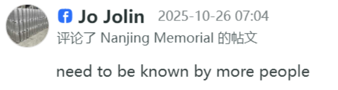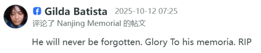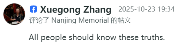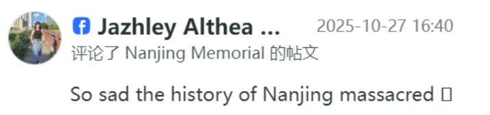 网友Jazhley留言:“南京大屠杀的历史令人悲痛。”