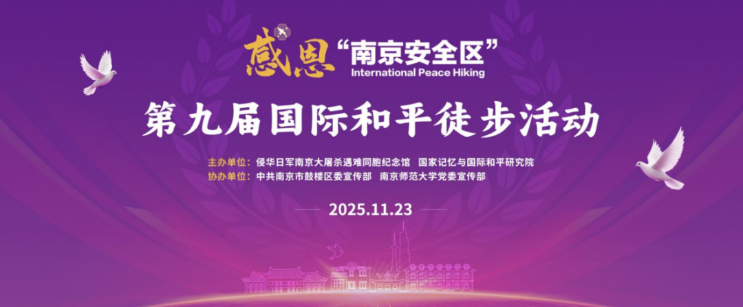 1937年11月,20多位外籍人士与中方人士一起,冒着生命危险留守南京,建立南京安全区,庇护了25万多名中国难民。为了感恩他们的大爱义举,我馆将于11月23日举行第九届“感恩·南京安全区”国际和平徒步活动。