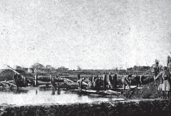 日军部队在句容天王寺附近架桥