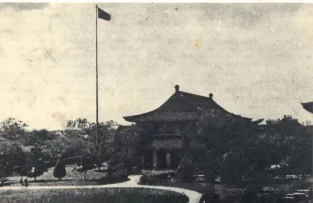 金陵大学校园内竖起的高旗杆(来源:南京大学微信公众号)