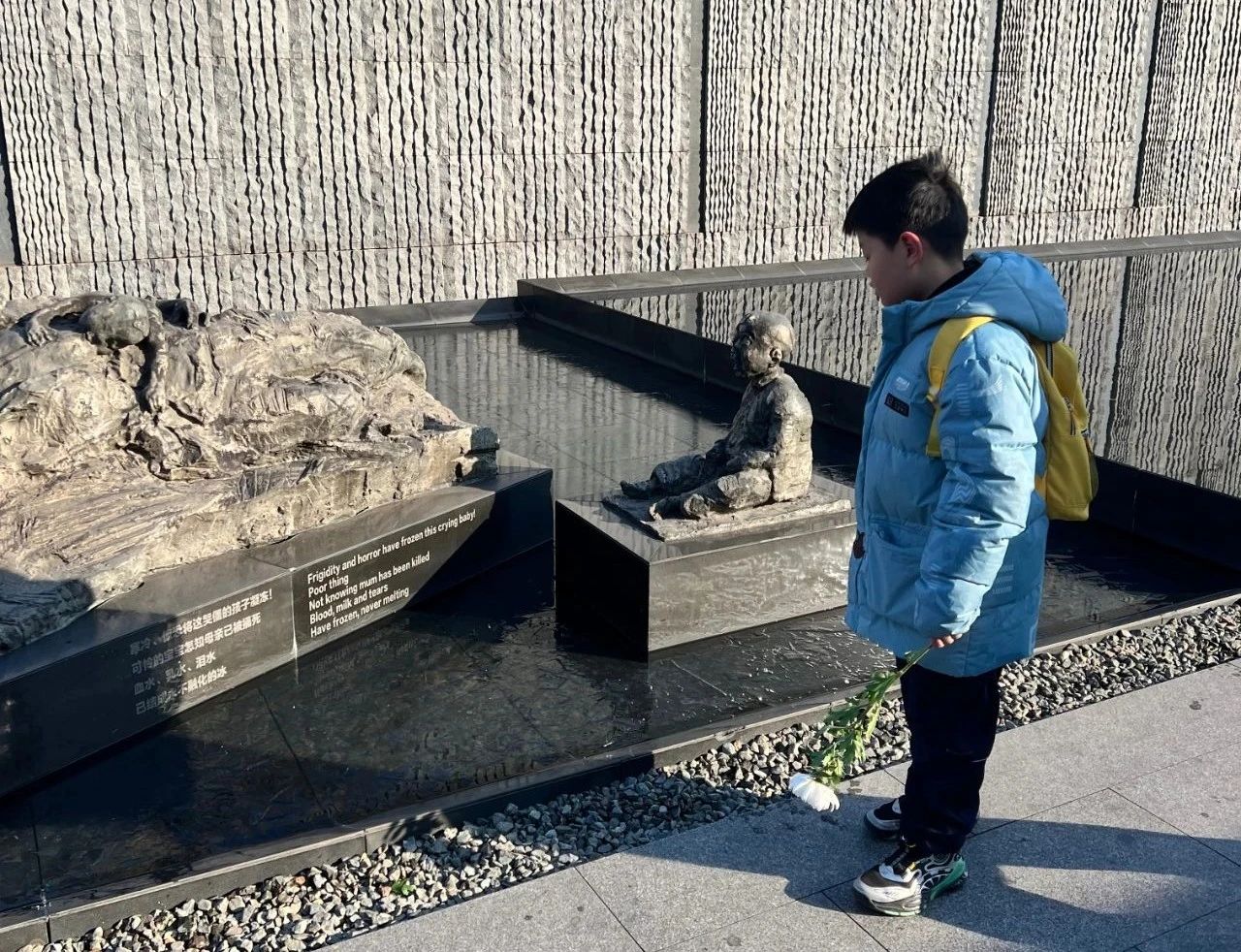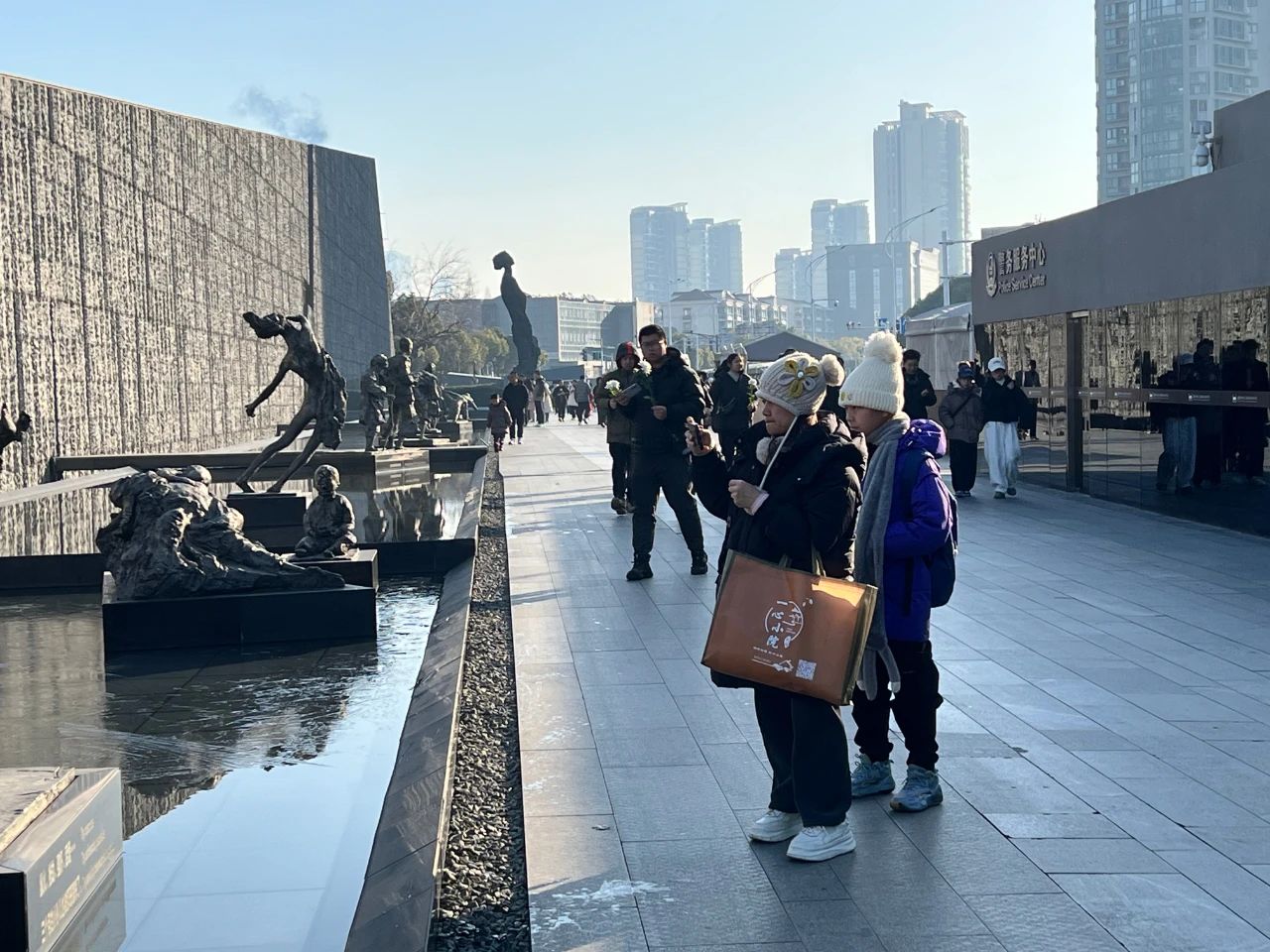 来自重庆的邢先生和郭女士这个春节到南京自由行。参加8:30的撞钟仪式后,他们在展厅里细细参观了近两个小时。邢先生和郭女士说,看完展览以后心情太沉重了,中国的过去太落后,走出展厅重见蓝天白云,真心感觉到生活在当下的中国很幸福、很幸运。