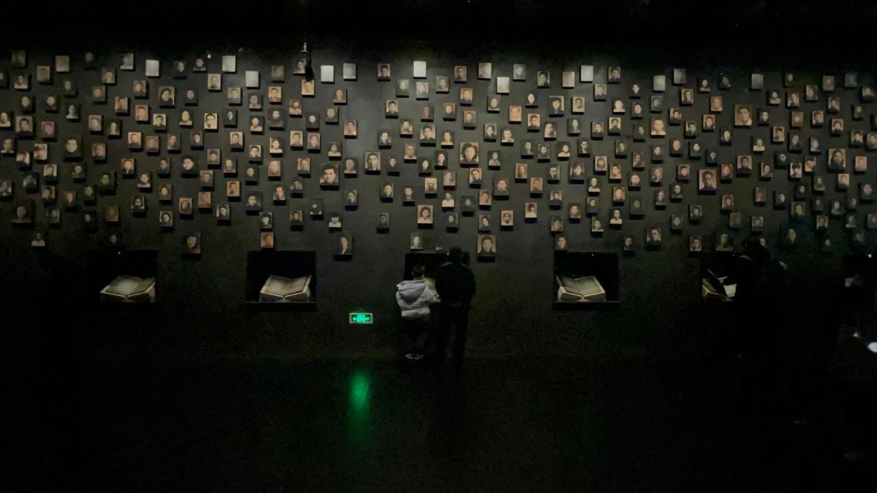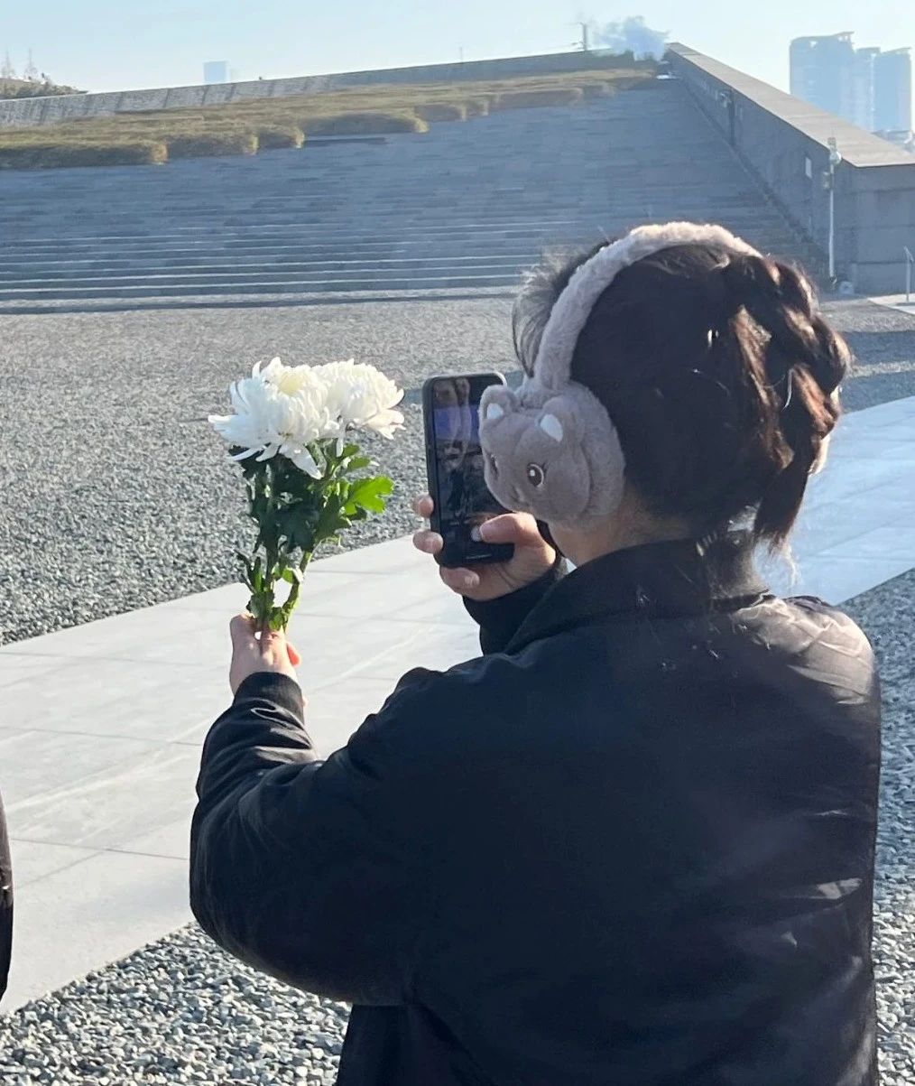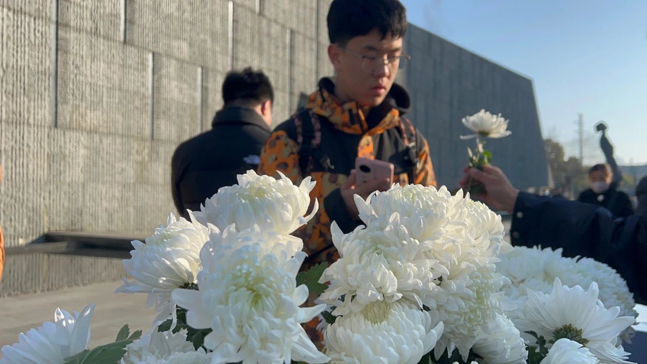与此同时,在纪念馆尾厅,悠扬的音乐声吸引不少观众驻足。在杭州师范大学音乐学院就读研究生的杨梦旭,正在为观众弹奏《一条大河》。杨梦旭从初一到初四都在纪念馆做志愿者,她说想用自己的所学服务观众,也让音乐唤起更多人对那段历史、对祖国的情感共鸣。