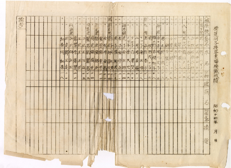 有一份史料是日本关东军第六病院棚木军曹反映日军后勤情况的原始文件,包括人员和军马的粮食配给、官兵医疗等,其中有一份“慰安妇”名录是日军野战医院为“慰安妇”所做的体检表格,记录了“慰安妇”的种族、屋号、艺名、本名、年龄。其中,中国籍“慰安妇”有12人,最小的18岁,最大的36岁。
