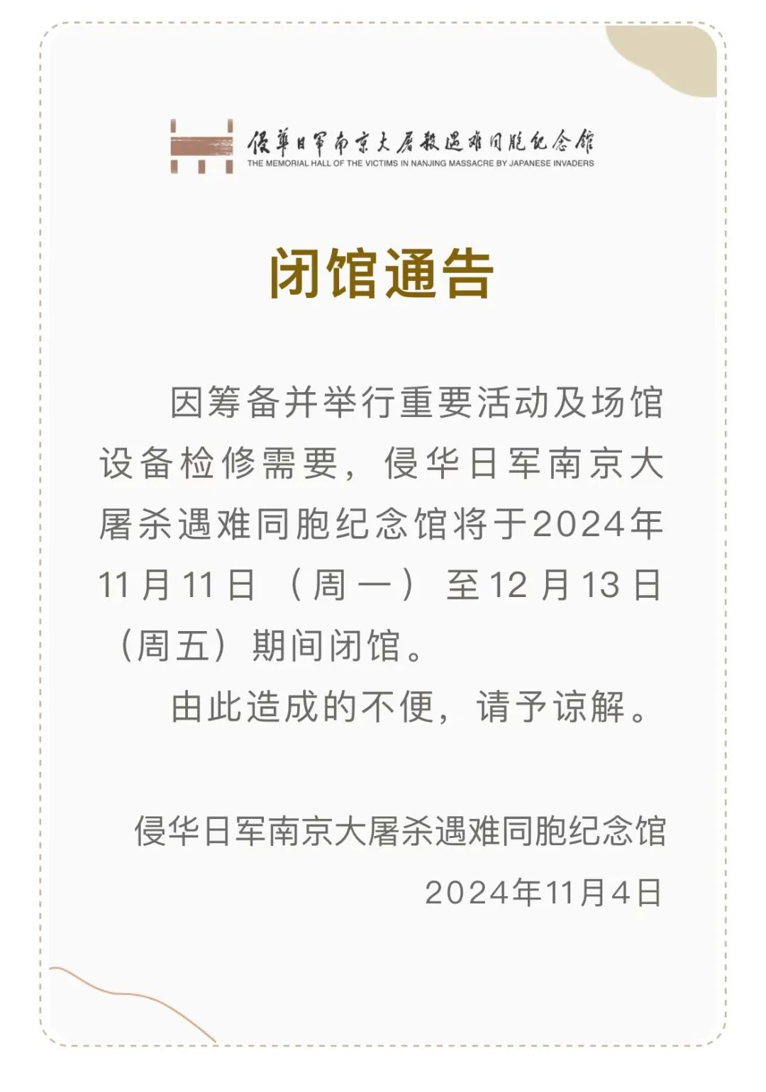 闭馆通告