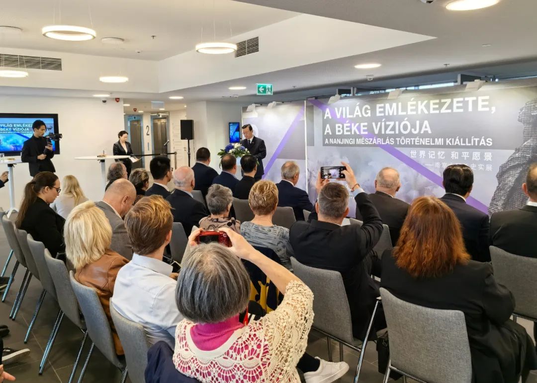 ハンガリー現地時間の10月30日、「世界記憶 平和のビジョン――南京大虐殺史実展」は初めてドナウ河畔の歴史古城ブダペストに来た。16時、ブダペスト民族志博物館で開幕し、スペイン・マドリードの展示に続くヨーロッパにおける2番目の展示となった。ハンガリーのジェシー・ピーター元首相、ハンガリーのヘウィッシュ市のシュエツァル・サンドール市長、ウェレンツェ市のゲルハルド・アボッシュ市長、ハンガリー駐在中国大使館の孫傑文化参事官、侵華日本軍南京大虐殺犠牲同胞記念館の周峰館長、ハンガリーと中国各界の代表ら約100人が参加した。