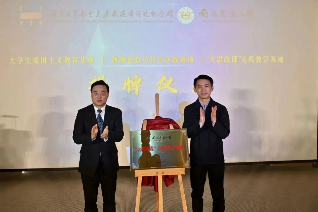 随后,南京农业大学-侵华日军南京大屠杀遇难同胞纪念馆“大思政课”实践教学基地、大学生爱国主义教育基地、教师德育与社会实践基地、共建揭牌仪式正式开始。