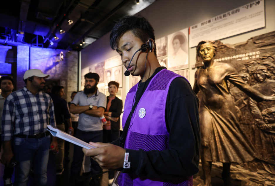 在展厅第四部分,来自巴基斯坦的国际志愿者迈德朗读了《拉贝日记》节选。他特别强调:“没有和平就没有未来。”基于中巴两国的友好关系,迈德在巴基斯坦就了解南京大屠杀悲惨历史。此次在纪念馆实地参观后更加感同身受,更体会到了和平的重要性。“中国为全世界的和平作出了很大贡献,我希望世界能一直和平,希望这样的悲剧不再发生。”