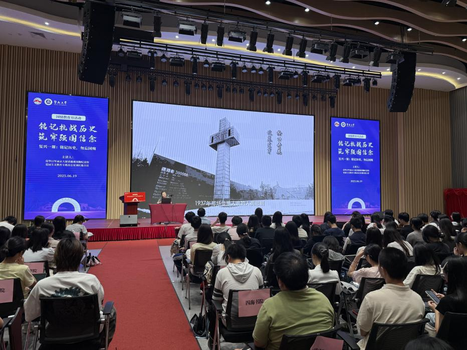 为深化爱国主义教育,赓续历史记忆,筑牢青年一代强国信念,6月19日下午,侵华日军南京大屠杀遇难同胞纪念馆爱国主义教育专班宣讲团赴广州暨南大学,为近300名师生带来《复兴一课》主题宣讲。此次宣讲是纪念馆拓展教育阵地、面向青年群体传播历史真相与和平理念的重要实践。