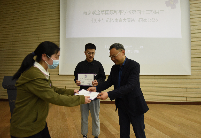 张馆长为同学们颁发“和平使者”证书