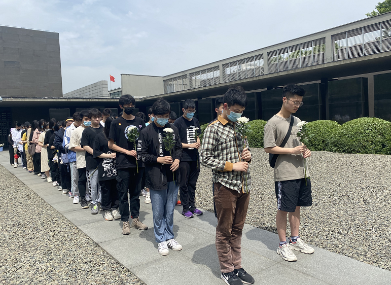 随后,学生们参观了史料陈列厅、“三个必胜”专题展区,并向南京大屠杀遇难同胞敬献菊花。