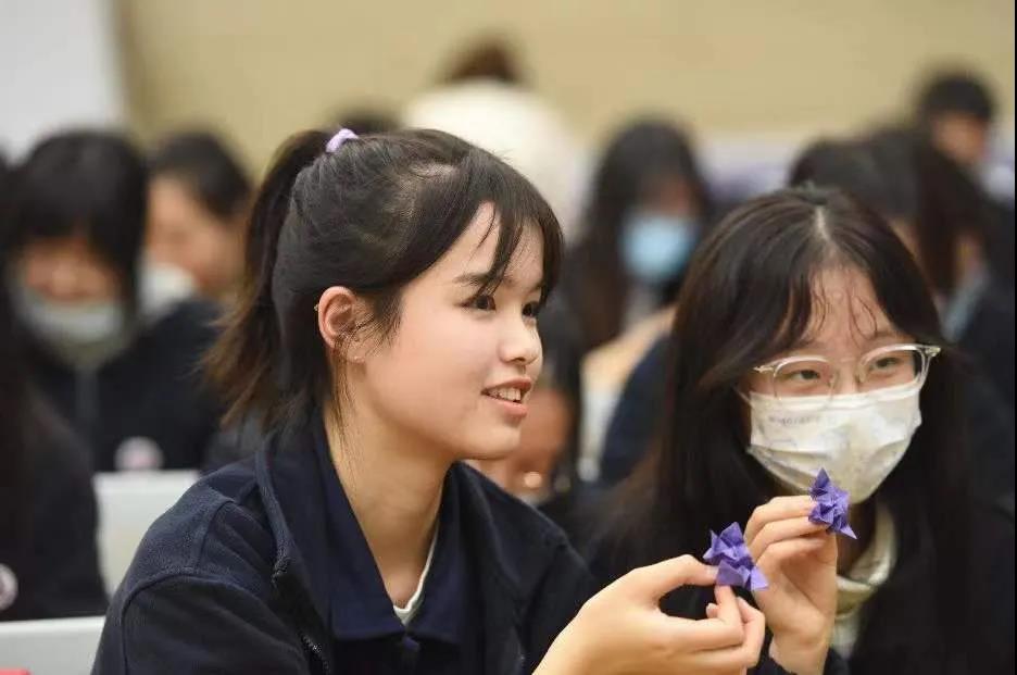 中午,他们跟随我馆工作人员动手折叠和平之花紫金草,一张张紫色纸片变成了一朵朵象征和平与希望的紫金草。