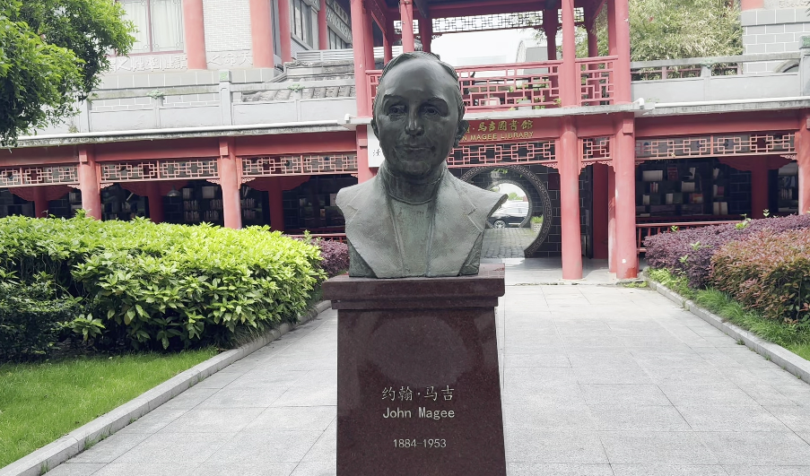 上午10点,南京外国语学校仙林分校的师生们来到南京市第十二中学。这所中学的前身是1917年美国传教士约翰·马吉以基督教圣公会的名义在南京下关创办的益智小学,在南京市第十二中学的老师带领下学生们参观了约翰·马吉故居。