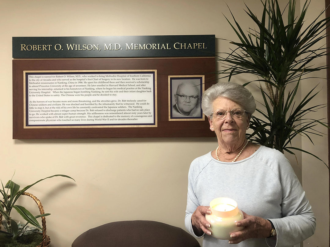 Holding candles in the above pictures are daughters of Robert Wilson, the only surgeon at the Drum Tower Hospital during the Nanjing Massacre. We received an email from his daughter: "I have been thinking of all the wonderful people at Memorial Hall…Our families are doing well as we hope all of the dear friends we have there are also. The Chapel at Arcadia Methodist Hospital is dedicated to Dad and I thought what a perfect place for my candlelight ceremony. Thank you for your dedication for continuing to honor our father and the many others during the Massacre. "