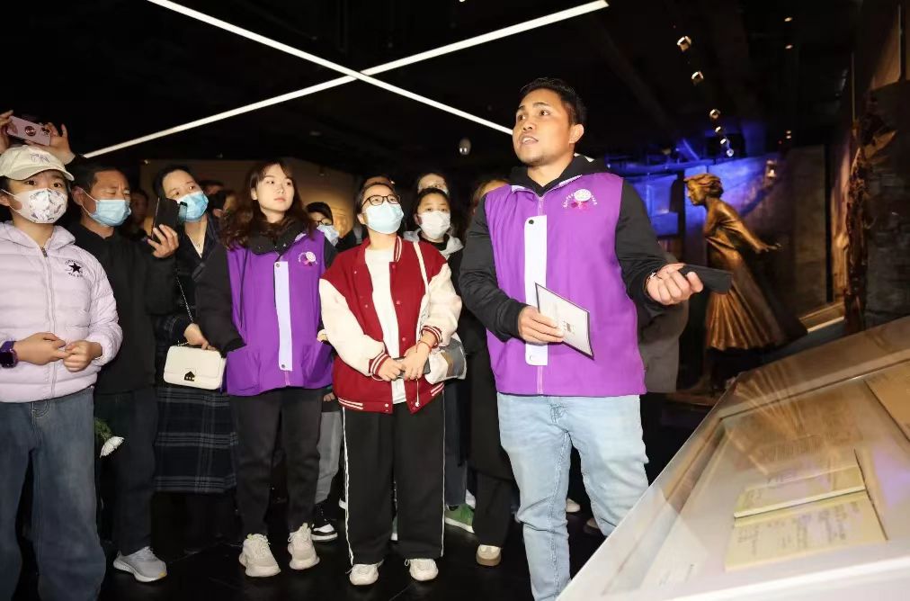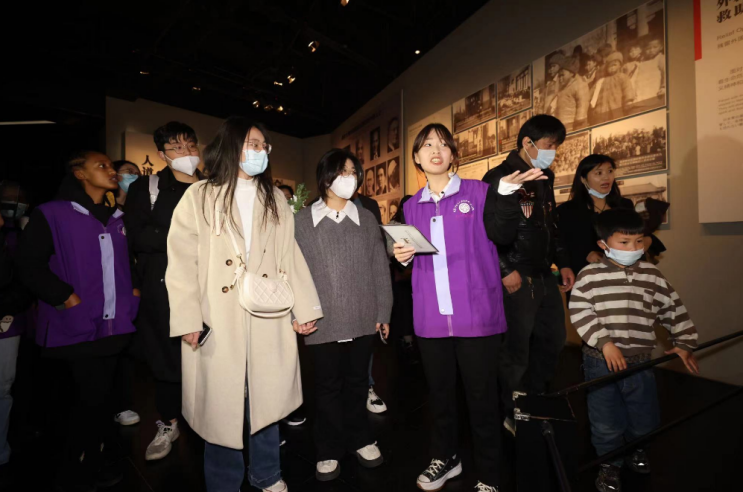 In the exhibition hall, Jiwon Park from the Republic of Korea (ROK) told visitors about the story of John Rabe. During the massacre, Rabe and a dozen of other foreigners set up the Nanjing Safety Zone, taking in and saving more than 200,000 Chinese. Jiwon Park is currently pursuing a postgraduate degree in Southeast University. She became a Zijin Cao international volunteer in 2022, hoping to promote global awareness about the history of the Nanjing Massacre in this way. “I often share what I saw in Nanjing to my friends in the ROK and from other countries. I hope more people could learn about the history,” she said.