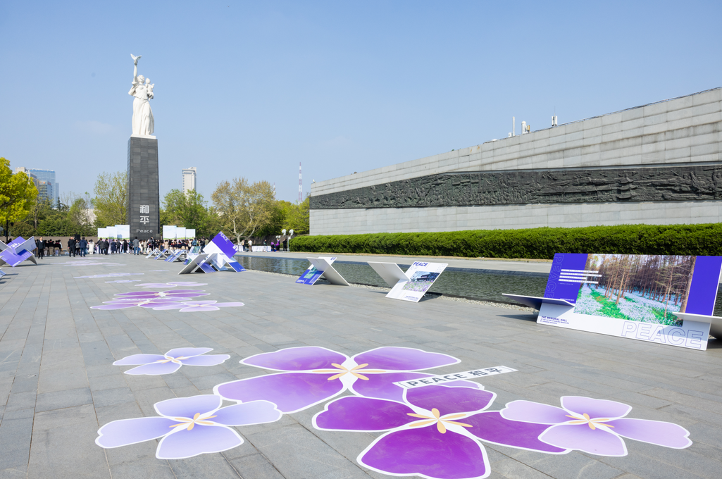 The Zijin Cao petal-shaped art installation attracted a crowd of visitors. In recent years, the Memorial Hall has rolled out a series of Zijin Cao themed activities to tell the world how people in Nanjing cherish peace. They included publishing Zijin Cao series books, setting up the Zijin Cao Volunteer Service Team, establishing the Zijin Cao International Peace School, opening the Zijin Cao Peace Lecture, and designing and developing Zijin Cao series cultural & creative products.
