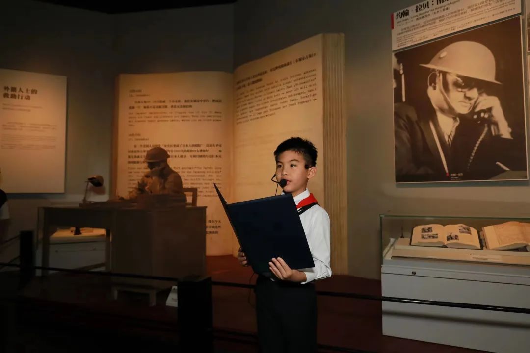 Cheng Xihan, a primary school student from Nanjing Foreign Language School Xianlin Campus, takes part in the reading as a volunteer