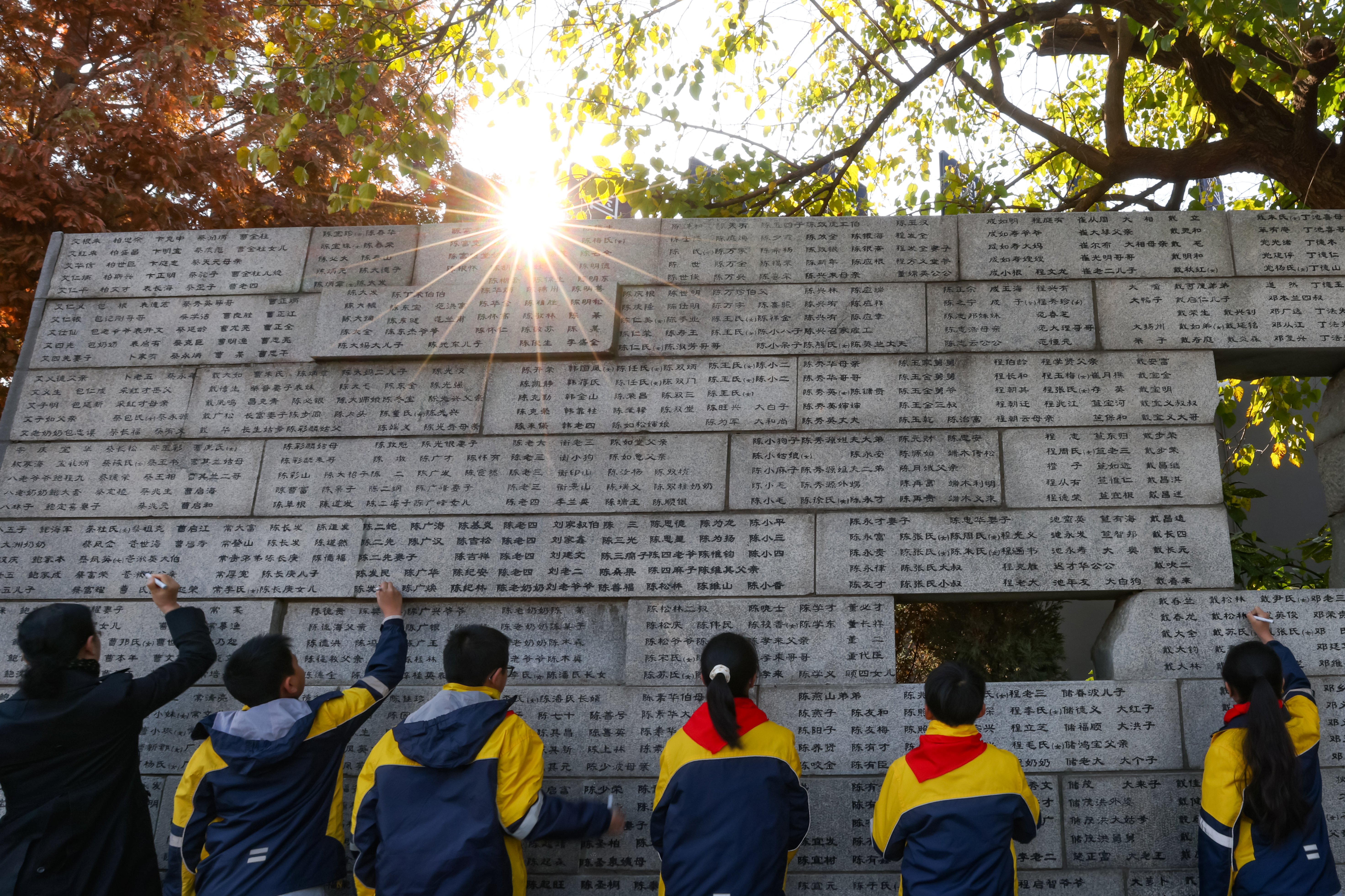 On December 3, 2023, a group of children traced over the names of the victims of the Nanjing Massacre in front of the “Wall of Tears” at the Memorial Hall. May the sunshine of peace always shine on the children and in everyone's heart, as it shines in this moment.