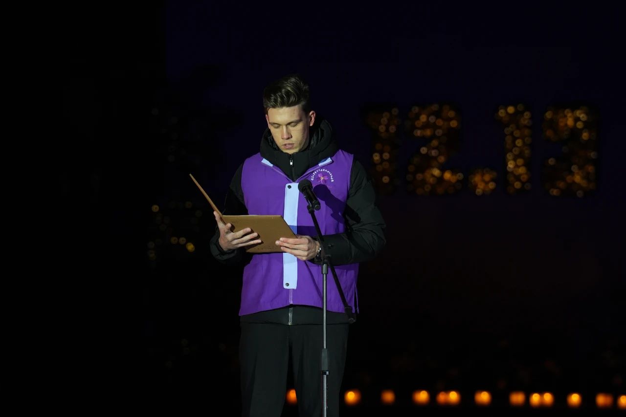 A trumpeter played Nanjing Memories. Representatives from the historical memory inheritors of the Nanjing Massacre, descendants of international friends, overseas Chinese representatives, students, domestic and international volunteers from Zijin Grass, as well as peace-loving individuals from all walks of life at home and abroad, held candles to commemorate the deceased, look forward the future, and send out a voice of peace from Nanjing to the world.