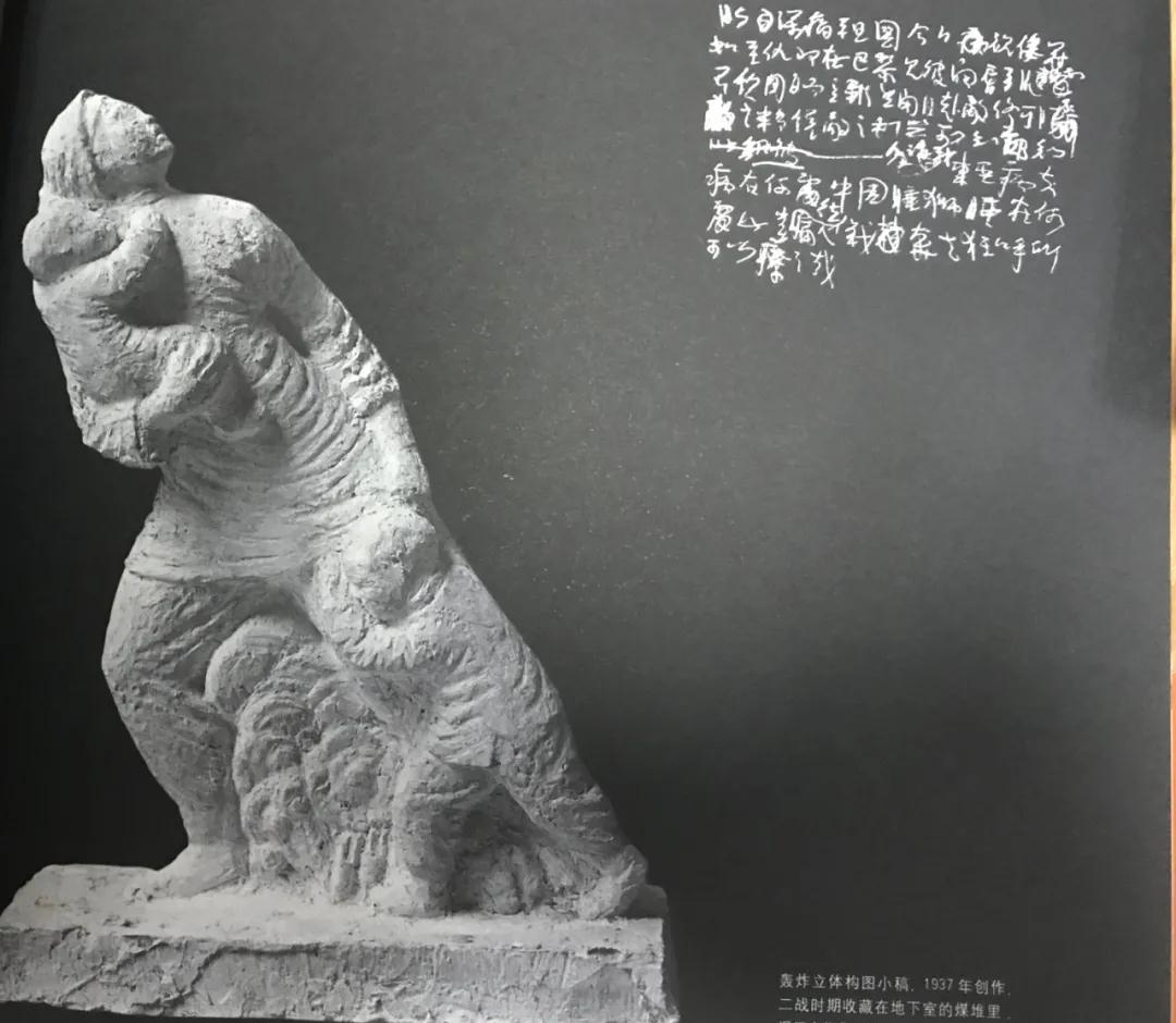 《轰炸》立体构图小稿,1937年创作,二战时期收藏在地下室的煤堆里