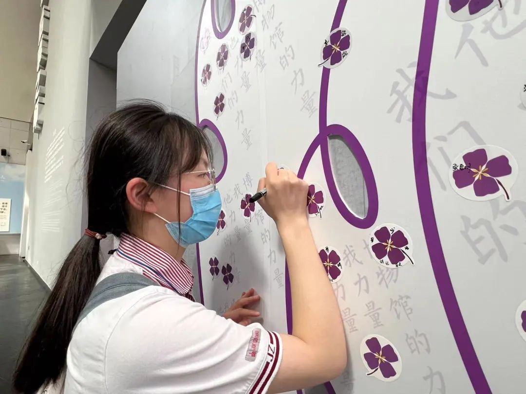 国际博物馆日下午,在参观史实展后,金陵中学师生代表参加了“5·18博物馆日”花语仪式化教育活动。同学们在信纸上写下参观感悟,折成花朵形状放置于“花语”装置上,传递和平的力量。