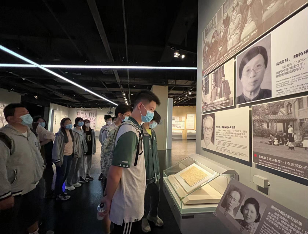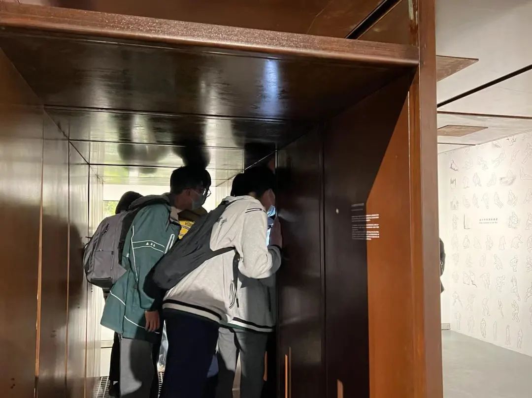 随后,同学们参观了当天上午开幕的《宁在——南京·和平城市记忆设计展》,他们通过视觉、听觉、触觉、嗅觉等沉浸式体验,感知日常城市空间中的和平元素,体悟生命的价值。