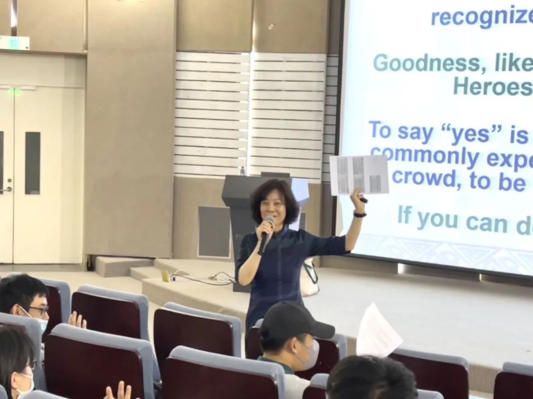 紫金草国际和平学校受聘教师濮文是南京大屠杀亲历者的后人,在讲座上,她深情讲述了家族故事,“爷爷奶奶在世时经常说要珍爱和平,反对战争。记住历史是对逝去同胞最大尊重,是对人类和平最真挚的向往。”