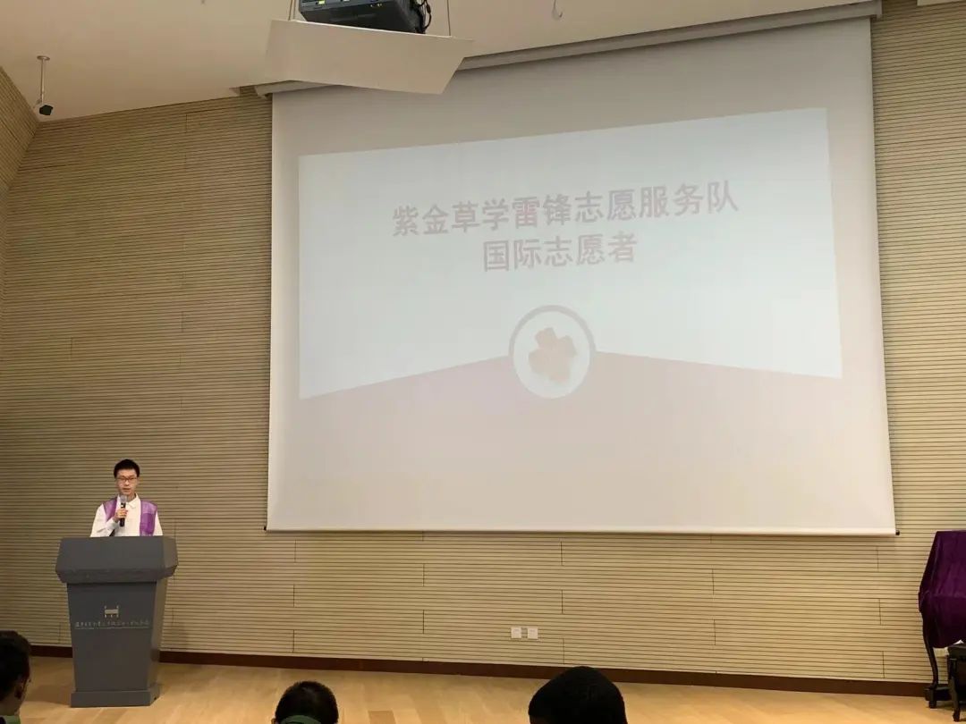 紫金草国际和平学校受聘教师、南京外国语学校尚媛媛为同学们讲述约翰·拉贝无私救助中国难民的故事。她说:“作为一名南京教师,我们都有一种特别的使命感,要让学生了解南京大屠杀这段历史,并帮助他们在前往海外求学时做和平使者,在合适的时候讲述这段历史。”