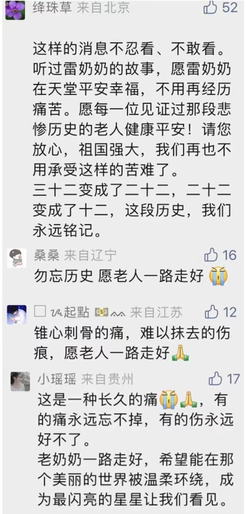 老人已随风而去,但她永远凝视着这段历史。愿老人来世被温柔以待!