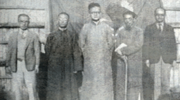 1940年,联大中文系教授在昆明北郊合影,左起:朱自清、罗庸、罗常培、闻一多、王力