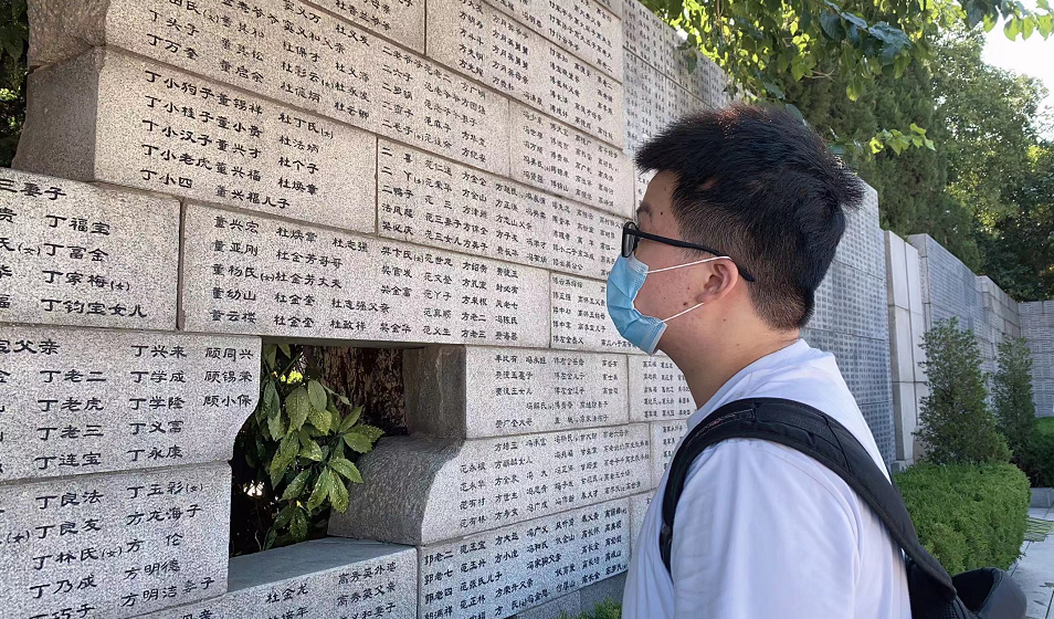 钟同学在纪念馆中参观了近4个小时,他感触颇深,“刚进入展厅时,看见墙上密密麻麻的照片和名字,它们代表着一条条鲜活的生命。”钟同学的太爷爷是烈士,父母都是党员。他表示,我们要永远热爱祖国,也祝愿祖国明天更加美好、更加富强!