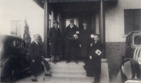 1937年12月2日,南京安全区国际委员会搬进宁海路5号。在外廊的台阶上,拉贝与委员会部分委员留下了合影。委员会布置了20余个难民收容所,身处战乱中的难民,从四面八方涌进安全区。