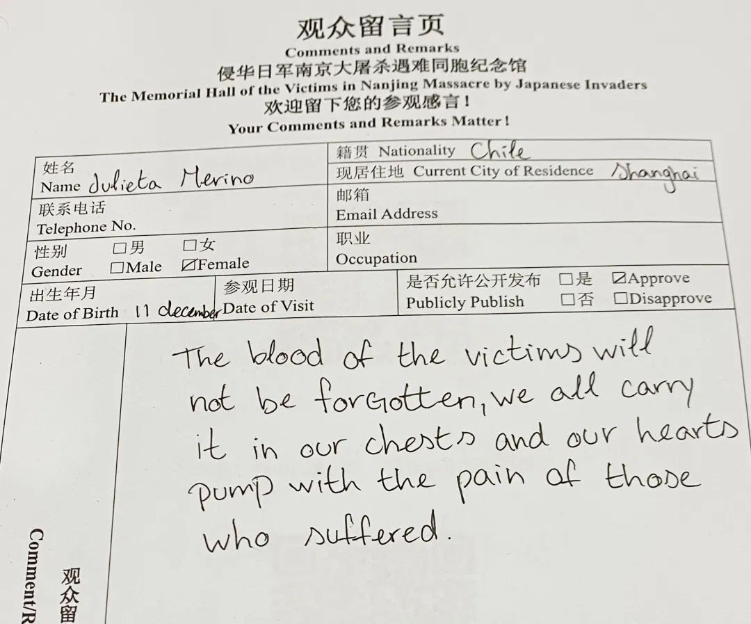 “作为一名党员教师,有责任向青少年呼吁铭记历史、勿忘国耻!”王女士是一名老师,她希望和学生分享在纪念馆里看到的内容。