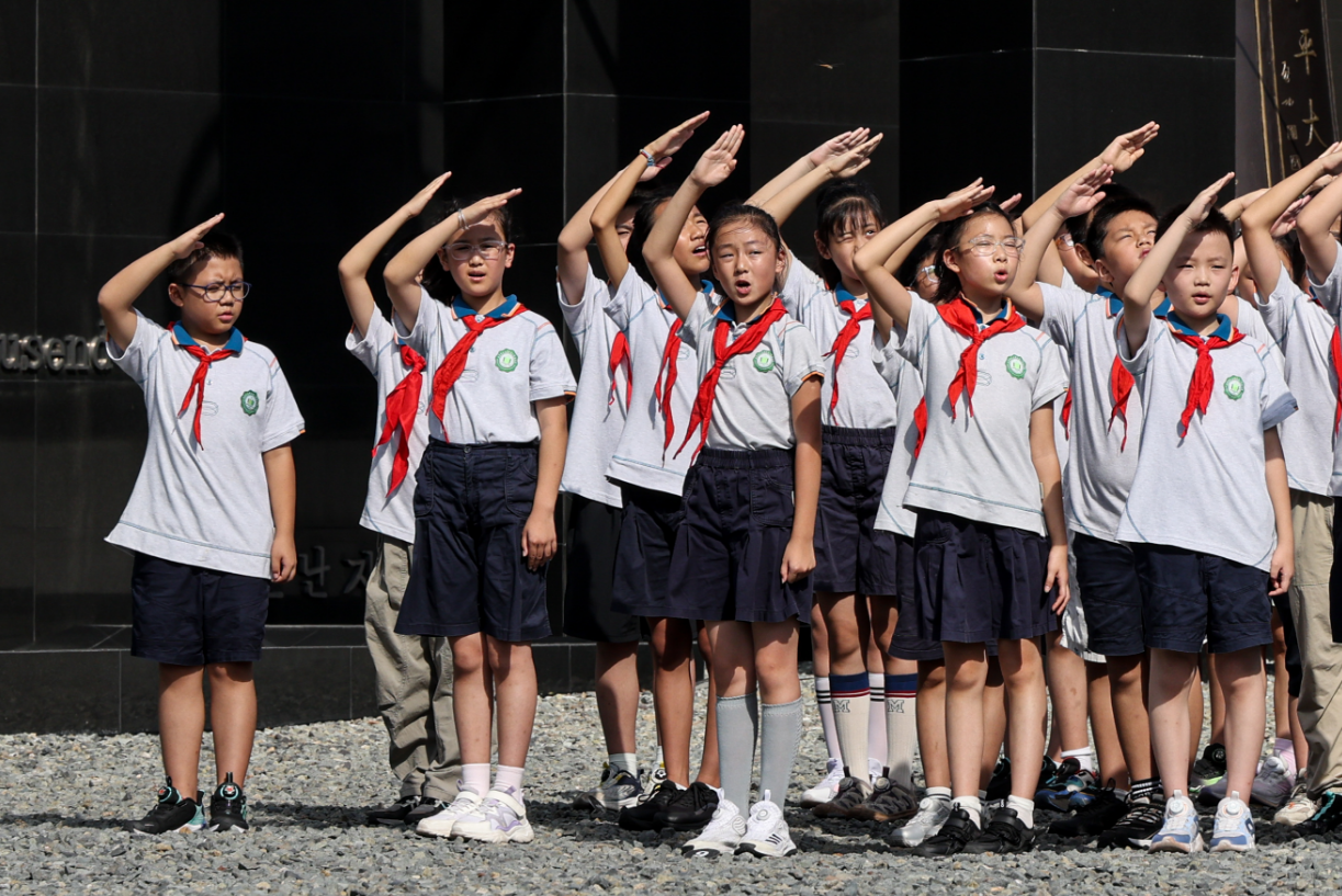 国歌唱毕,全场向南京大屠杀死难者、惨遭日本侵略者杀戮的死难同胞、为中国人民抗日战争胜利献出生命的革命先烈和民族英雄、同中国人民携手抗击日本侵略者而献出生命的国际战士和国际友人默哀。