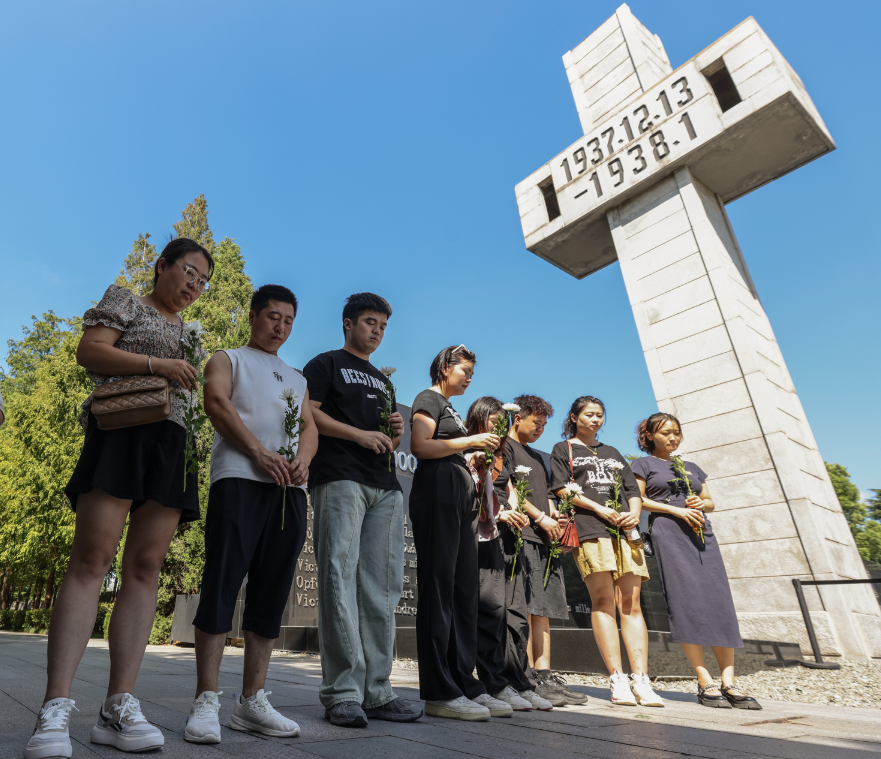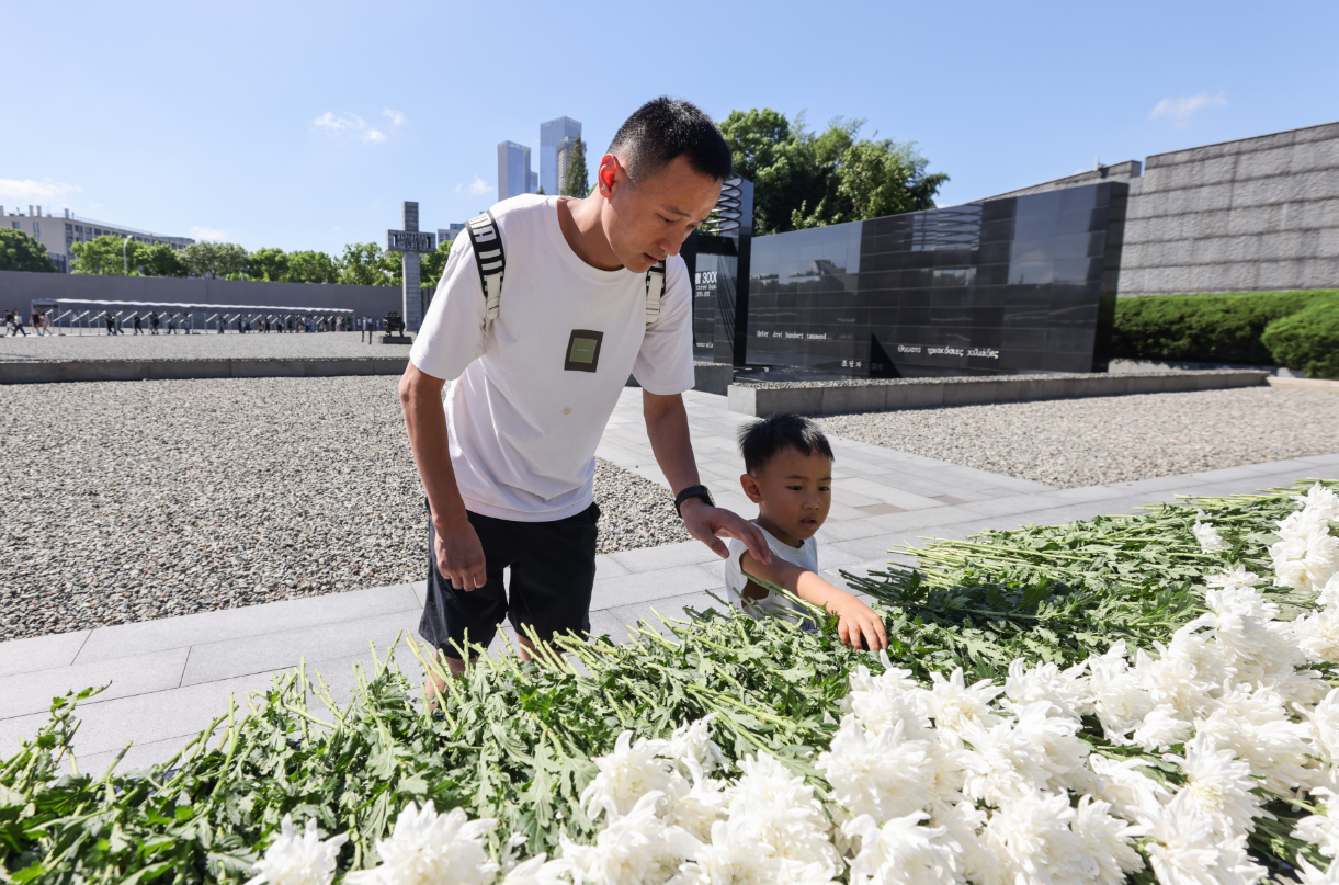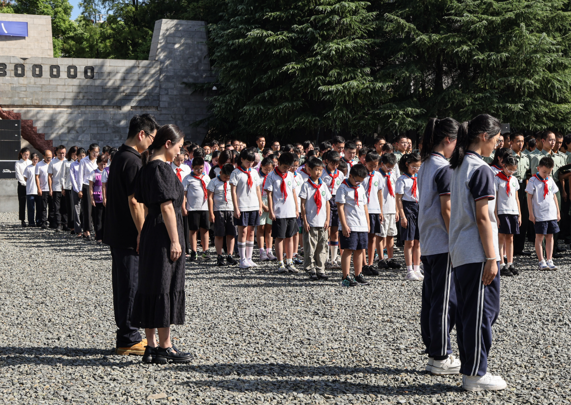 “刚刚警报为什么要响?”警报解除后,3岁的小男孩王子泓询问一旁站立的爸爸。“因为我们要记住祖国曾经遭受过的苦难。”爸爸王先生回答。王先生一家三口昨天从内蒙古呼和浩特来到南京,特意选择今天参观纪念馆。他说:“虽然孩子现在还小,但是展厅内的一些历史照片他能看懂,我们也会解释给他听。希望孩子以后能记住这一天。”