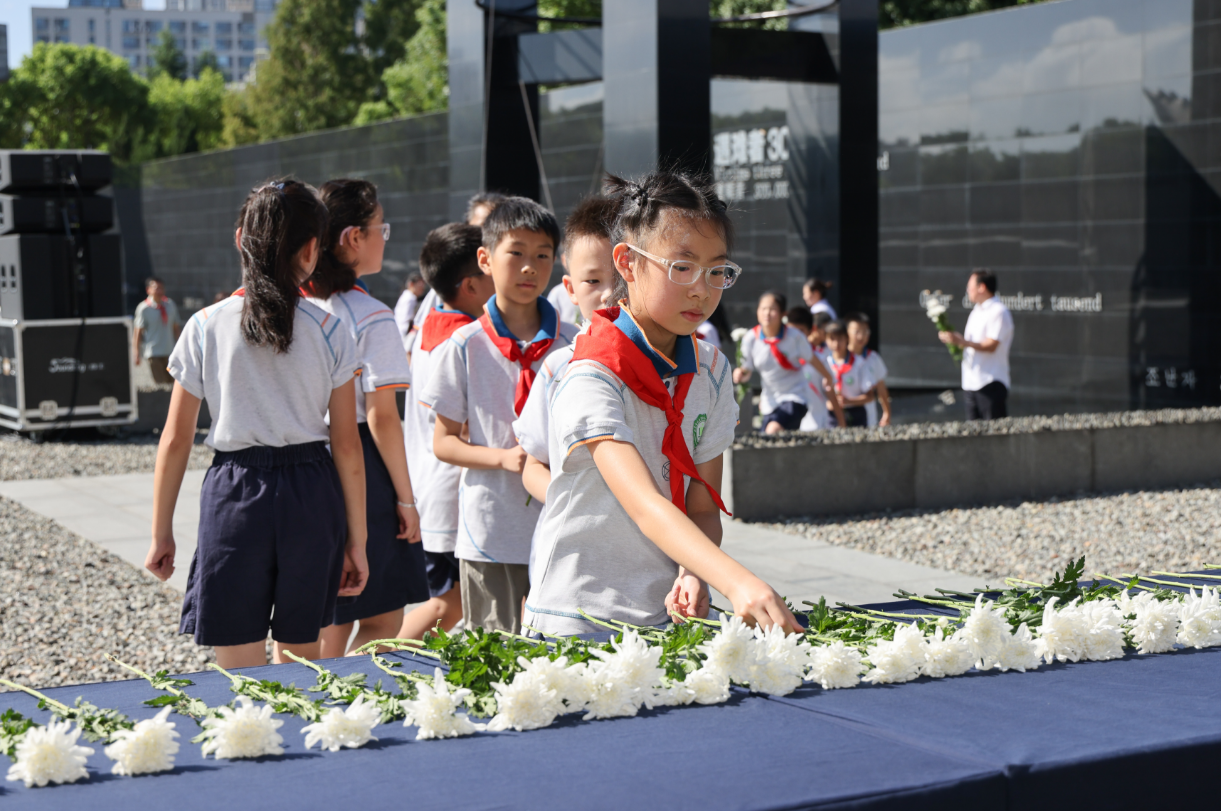 今天是九一八事变爆发93周年。上午,纪念馆在公祭广场举行铭记九一八事变爆发93周年主题教育活动。南京大屠杀幸存者后代代表、青少年代表、观众代表、街道社区代表、军校师生代表、纪念馆馆员代表、紫金草志愿者代表等500人参加了活动。
