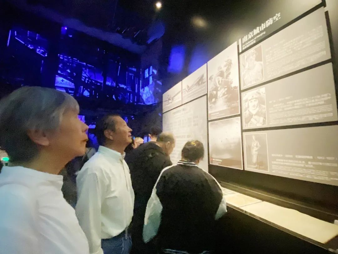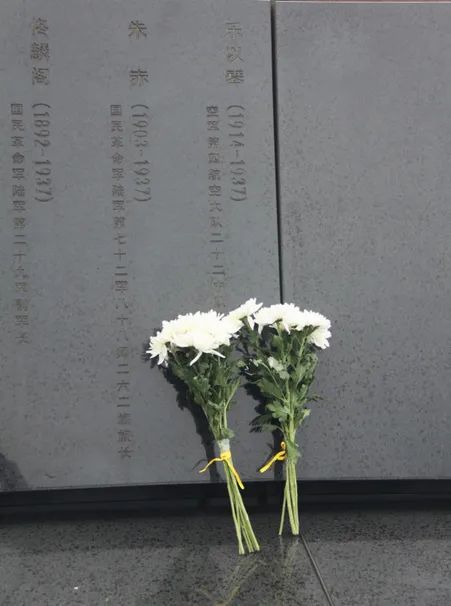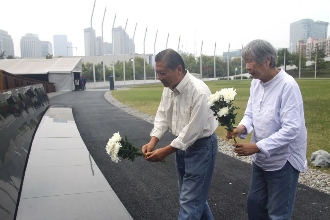 在纪念馆胜利广场,他们面向镌刻乐以琴名字的黑色花岗岩鞠躬、献花