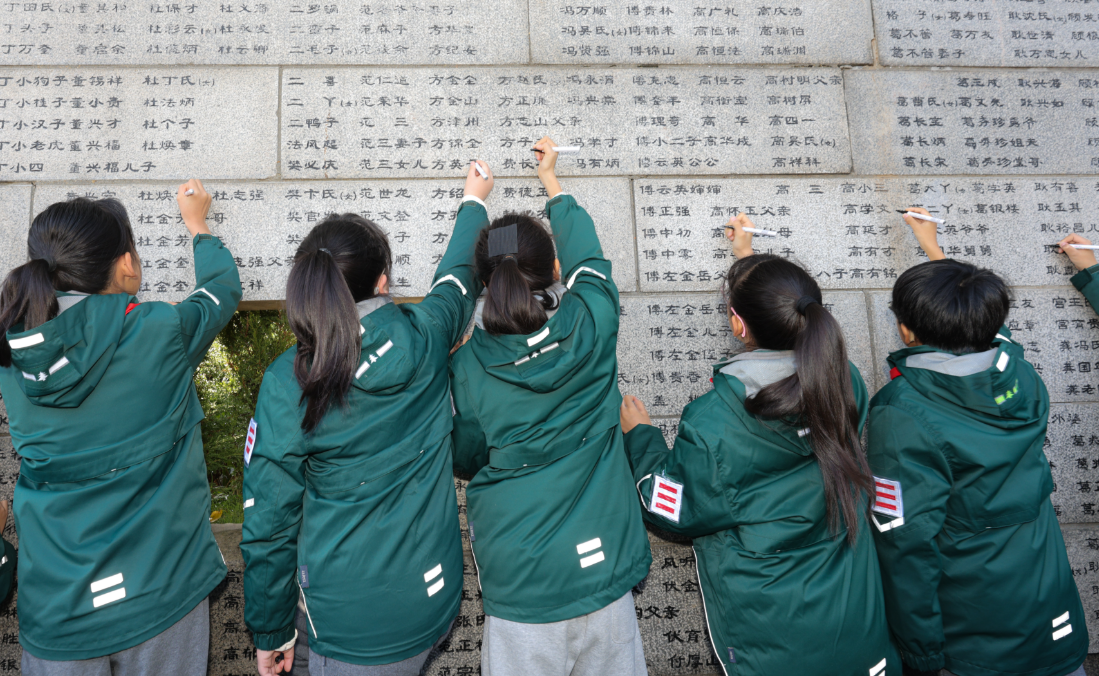 随着岁月流逝,南京大屠杀幸存者相继离世,目前仅有32位在世。为维护历史真相、传承历史记忆,2022年起,纪念馆先后为三批共32位南京大屠杀幸存者后代颁发了南京大屠杀历史记忆传承人证书。越来越多的年轻人自愿成为历史记忆传承人。幸存者后代代表、学生代表等为南京大屠杀遇难者名单墙上的名字逐一“描新”,寄托哀思。