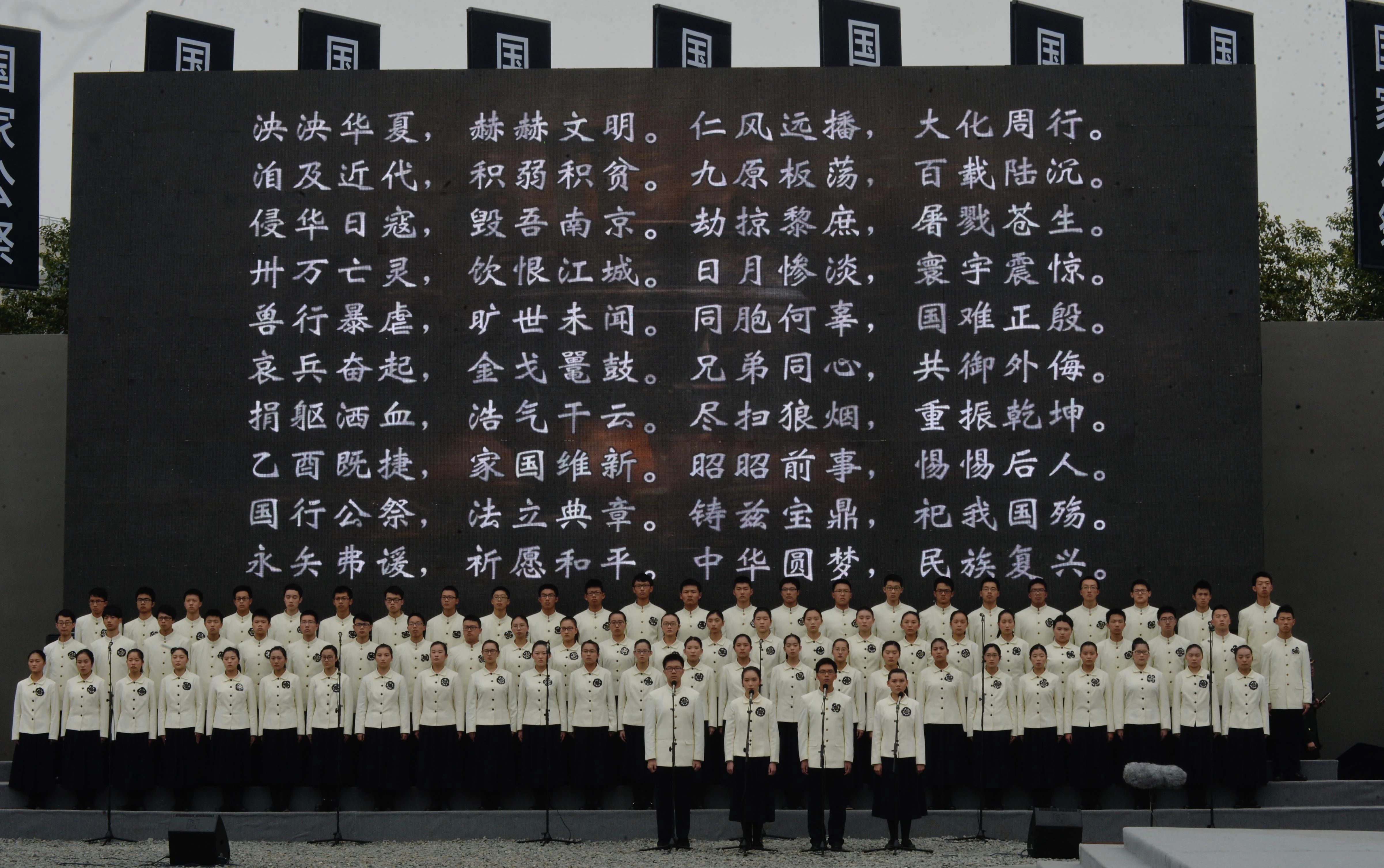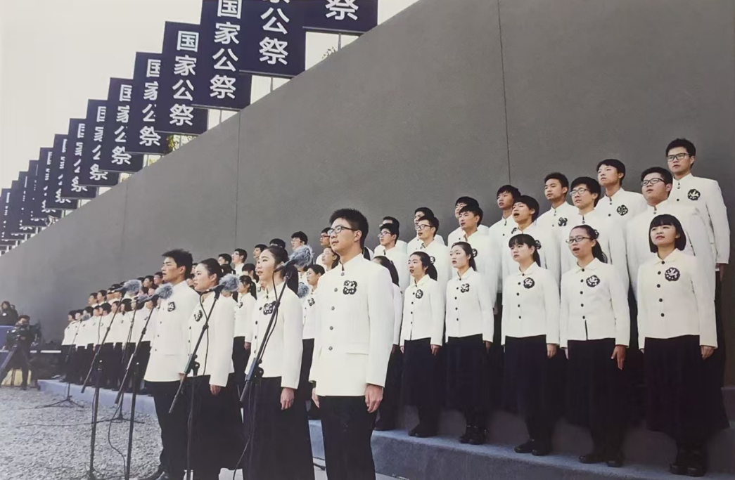 2014年,在首个国家公祭仪式上,15岁的霍浩辉和郭宁担任领诵。听到音乐一出来,霍浩辉再也抑制不住情感,“那时有一口气始终支撑着自己,想到那些历史画面,想到国家遭受的苦难,情绪随着诵读内容而波动”。郭宁凝视着前方“300000”数字,“30万代表一个个活生生的生命,随着北风的呜咽,仿佛在发出无声的控诉,紧张与激动融入到诵读的字里行间中”。