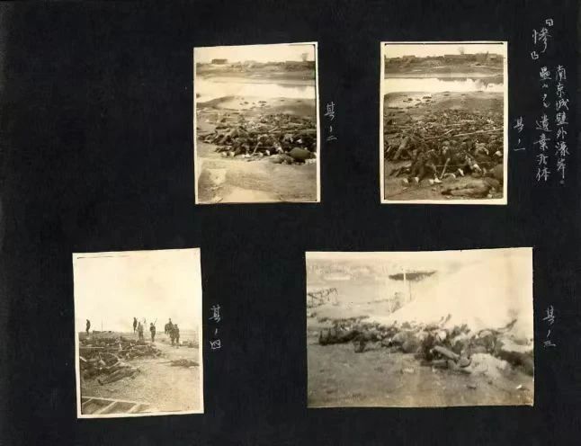 埃文·凯尔特别关注展厅内几本日军士兵拍摄的南京大屠杀相册。其中一本是日军航空兵伊藤兼男的照片集,相册中的一页上有四张照片,内容都是南京大屠杀后城墙外、护城河边被遗弃的累累尸体,在这页的右上角,还有一个“惨”字。埃文低头仔细看着。