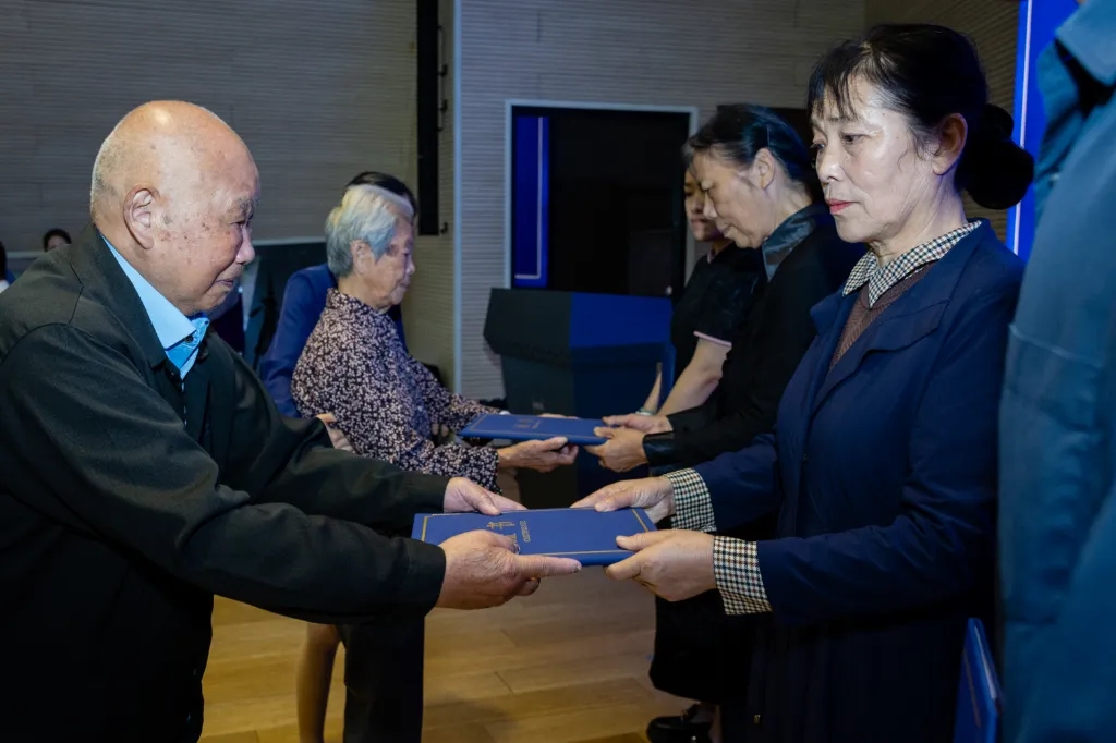 2024年重阳节,艾义英(左二)向第三批南京大屠杀历史记忆传承人颁发证书