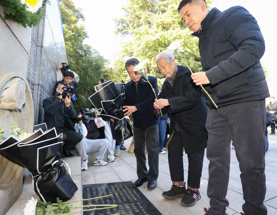 2024年12月1日,艾义英在纪念馆“哭墙”前祭奠亲人