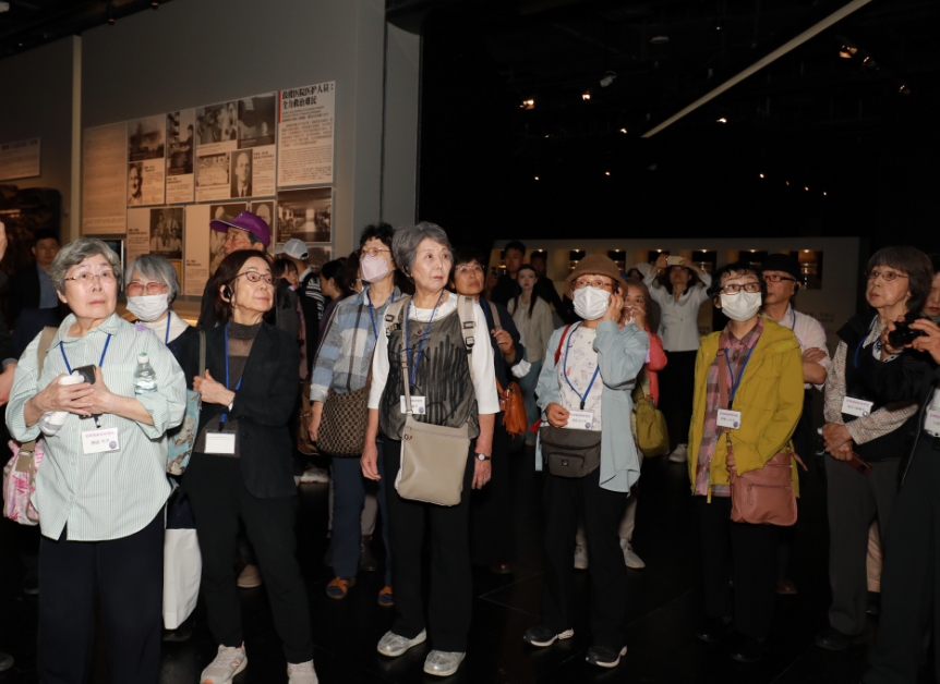 日本合唱团团员们走进南京大屠杀史实展。泛黄的历史照片、幸存者的证言影像、日本士兵的战时日记,将众人带回1937年那个寒冬,老人们驻足聆听讲解,眼眶泛红。